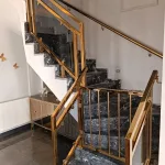 • Halim Bey Kahramankazan – Paslanmaz Gold Kaplama Dekoratif Camlı Modern Villa Merdiven Korkuluğu